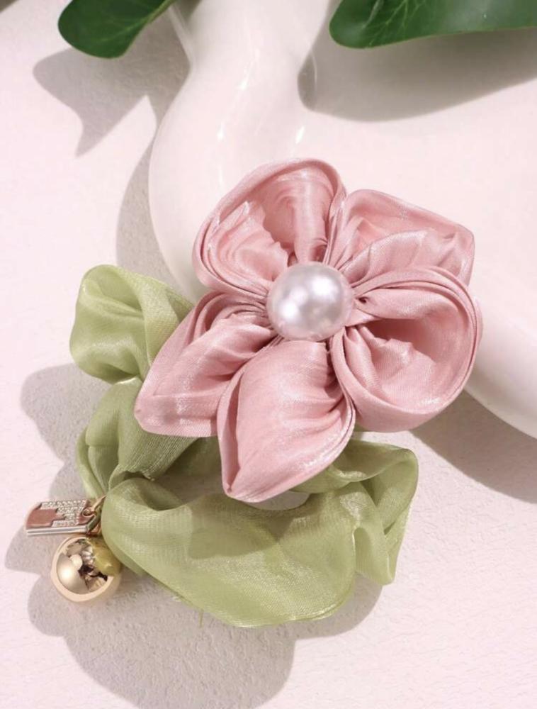 ربطة شعر على شكل وردة جميلة ورقيقة لون وردي